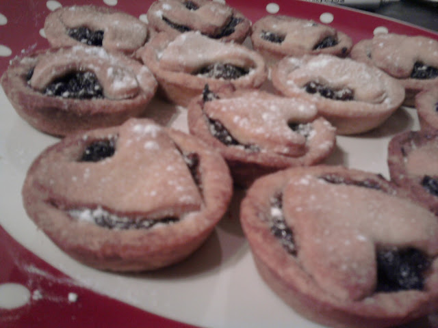 6. Take a teaspoon of mincemeat and drop these into each case. Re-roll the remaining the pastry and cut out small hearts. Drop these onto the top of the pies. Bake for around 10-15 mimutes until the mincemeat is bubbling and the pastry is golden and crisp.