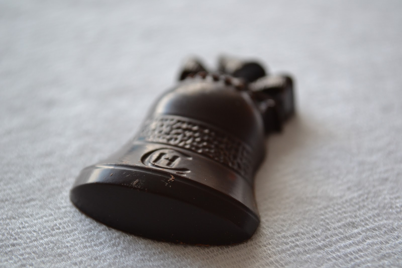 The 40 chocolates come in different flavours, some old favourites like salted caramels (who can’t resist a few of those?) and some Christmassy flavours such as gingerbread, mullled wine, star anise and cinnamon. Some are shaped into elegant domes and squares while others are festive shaped, check out the bell below: