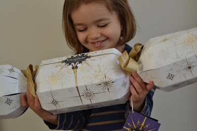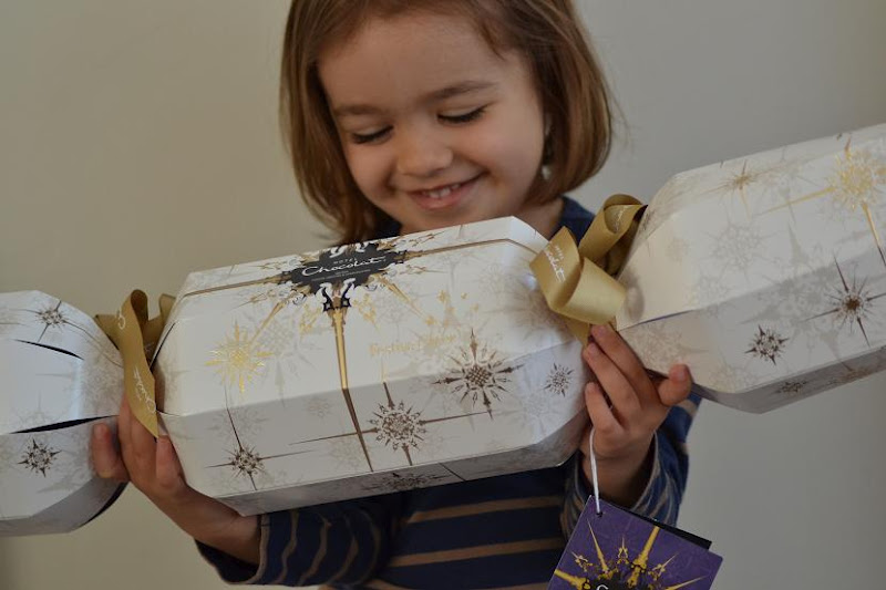 So this week I have mostly been eating chocolate… from this cracker. When I saw that Hotel Chocolat had brought out a ‘Rather Large Cracker’ packed full of chocolates for their Christmas range, I imagined it would be on the large side. But I didn’t expect it to be this big. I even took a photo of my three-year old holding it (bless her, she can’t believe her luck!) to show you the actual size of it: