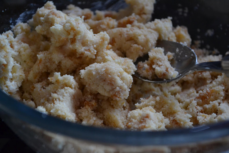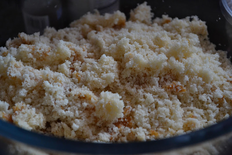 1. Crumble up 265g of cooled cake (I used a slab of shop-bought Madeira cake).
