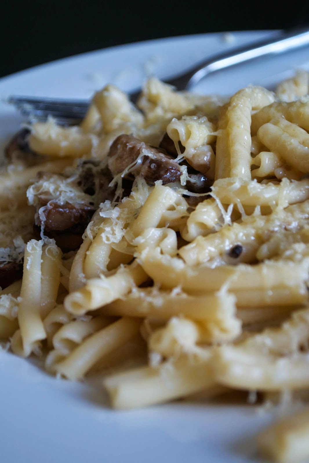 If you didn’t want to use pasta, you could try making some courgette strips and add that to the buttery mushrooms, instead.