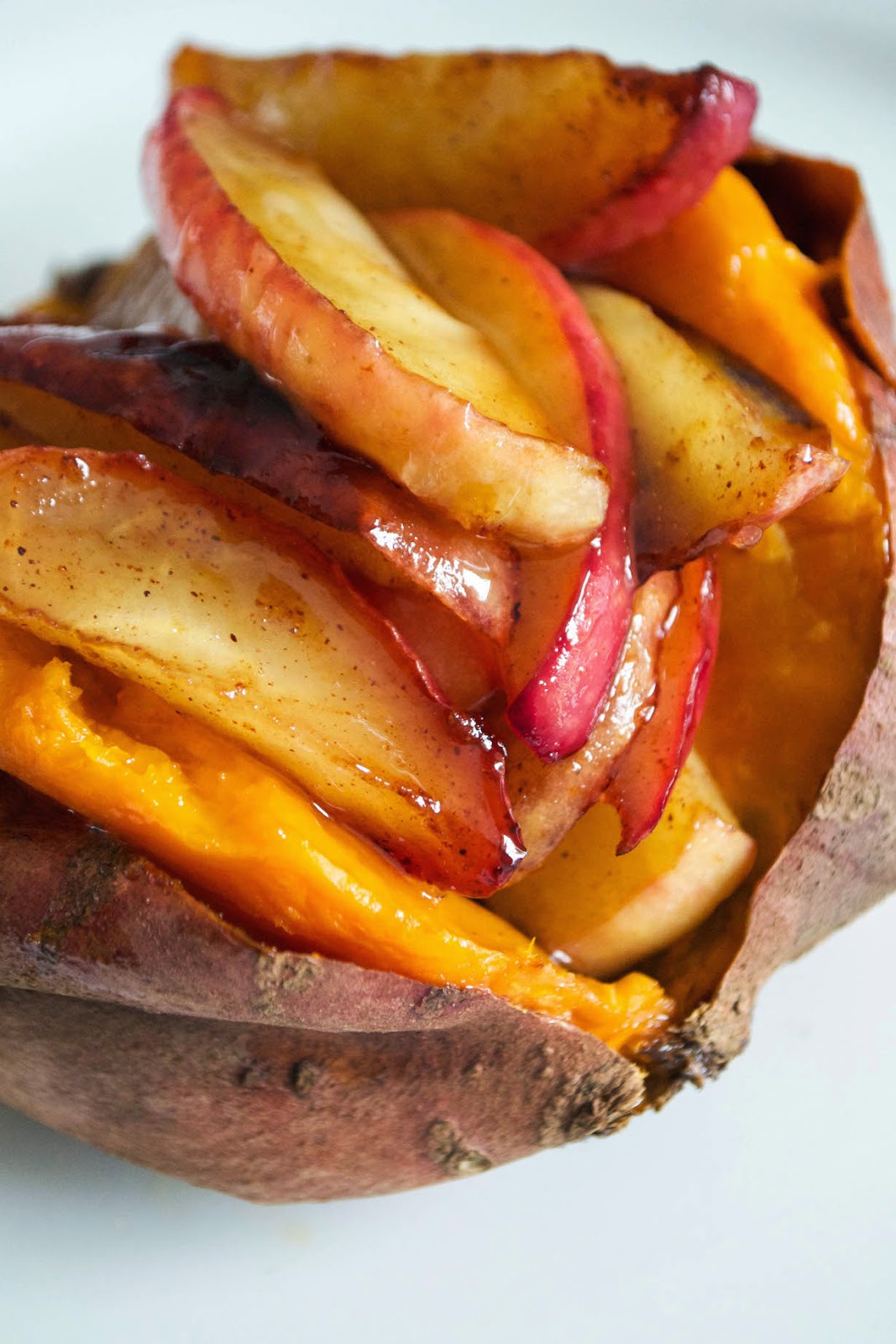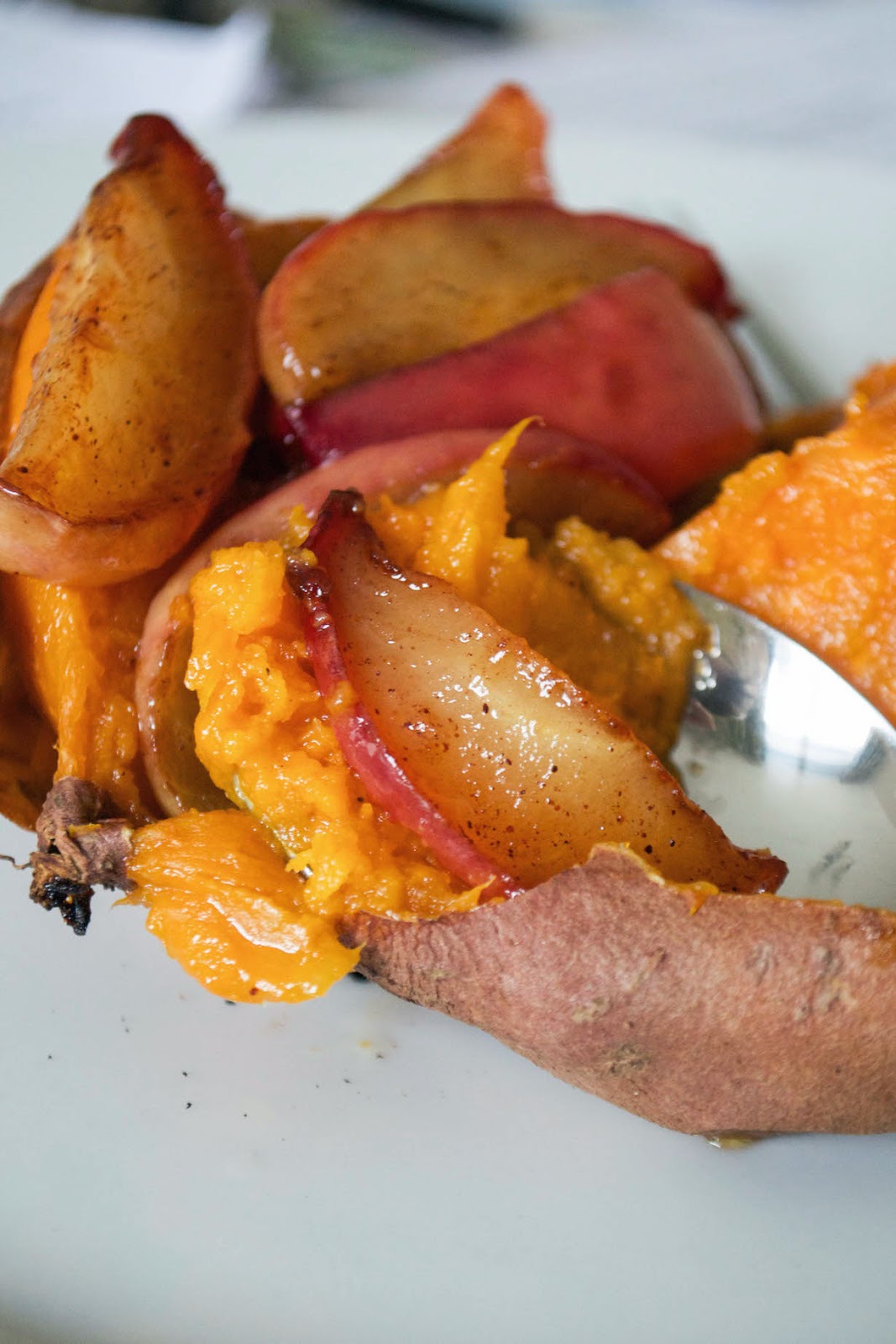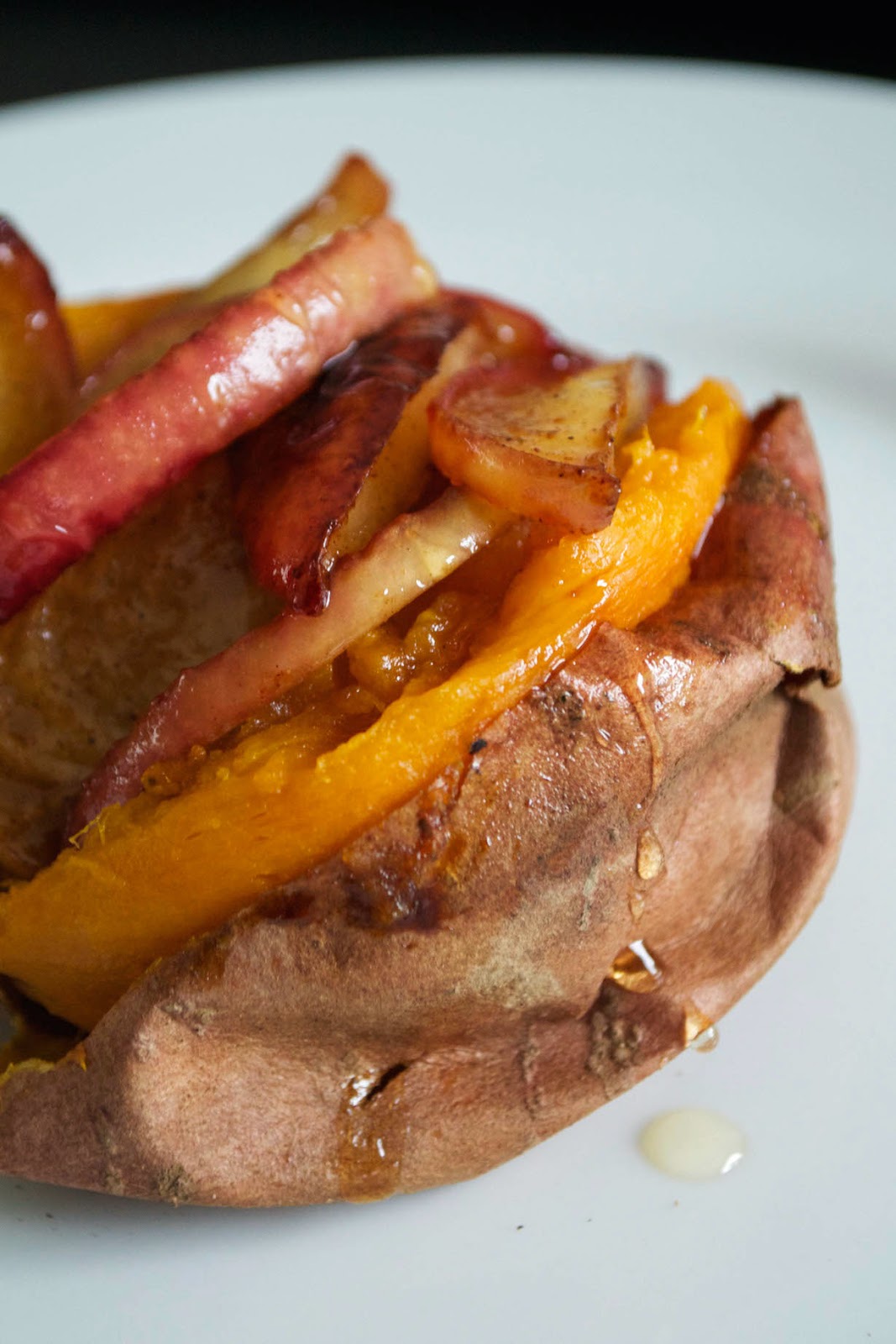 Baked Sweet Potato Topped with Caramelised Apples and Honey