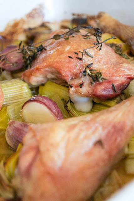 Roast Chicken Breasts with Leek, Garlic and Thyme