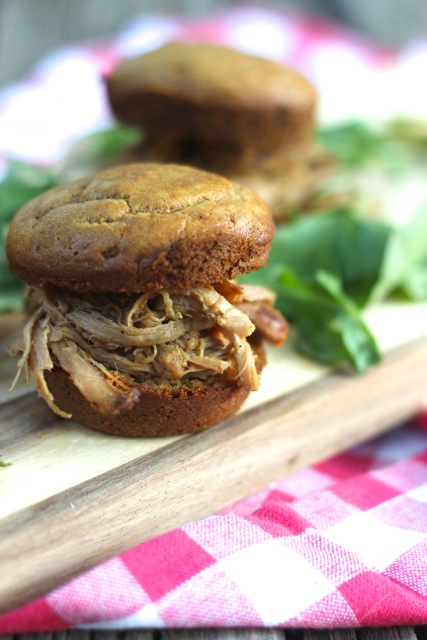 Place the pork loin in the bottom of the slow cooker. Place the onion rings around the pork. Sprinkle all the seasonings on top of the pork, saving the apple cider vinegar and honey for last. Once the pork has been seasoned, pour the vinegar on top of the pork and then drizzle the honey over the seasonings. Cook on high for about 4 hours, or until the meat shreds easily with a fork and knife. Serve with the Grain-Free Slider Buns for a house full of smiles!