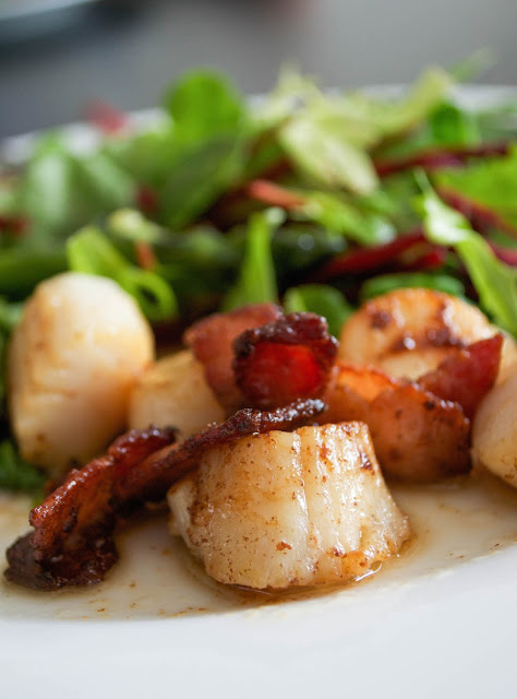 Nowadays, I eat scallops mostly with bacon, because I love the way the sweet scallop works so well with the crisp, salty, smoky bacon. It’s like angelic, pale scallop next to dirty, crave-worthy bacon.