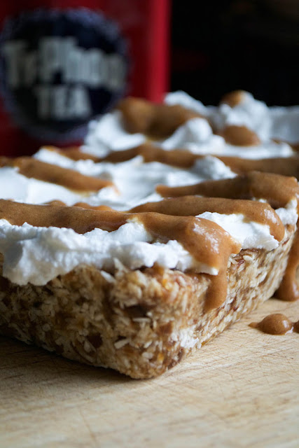You have the chewy, fudgy raw base, which is infused with the flavours of chai tea. Then there’s the fluffy coconut cream topping. And then to finish it all off, a salted chai tea drizzle. All good. All real food. And pretty damn gorgeous.