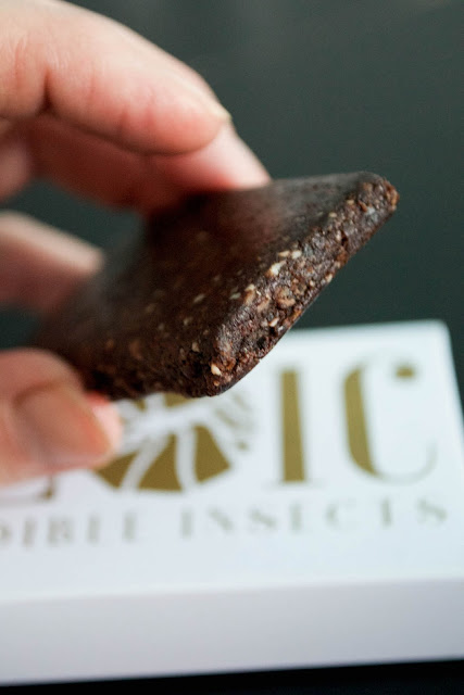 The bars I was sent are made from mealworm flour – there were two flavours. One was distinctly chocolatey (that’ll be cacao then) and the other had an almondy, citrussy sweetness to it. They were good. Chewy, sweet, dense. They’re made from all natural ingredients – dates, cashews – as well as the other ingredients used to flavour the bars.