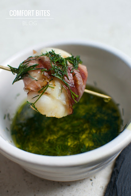 Prosciutto Wrapped Scallops with Lemon Dill Dressing
