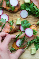 Mix the cassava flour, salt and dill in a bowl and add the water. You’ll end up with a thick, white, green-speckled batter. Put to one side.